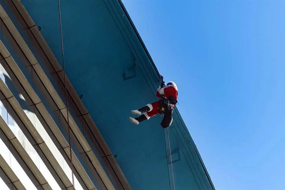 Monterrey, Nuevo León.– Niñas y niños que se encuentran internados en el Hospital Materno Infantil de Alta Especialidad recibieron este jueves una emotiva sorpresa desde las alturas, cuando personajes caracterizados descendieron por las fachadas del edificio para saludar y entregar regalos a través de las ventanas de los pisos cuatro y cinco. La actividad, realizada