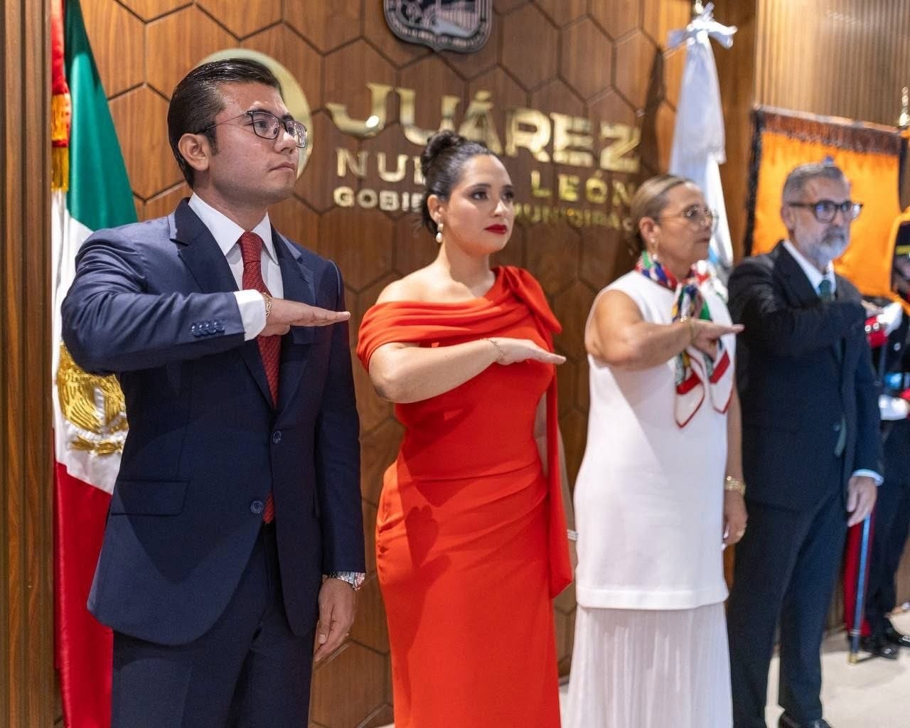 Alrededor de las 22:15 horas, el edil municipal inició el acto con los Honores a la Bandera, para posteriormente pronunciar las tradicionales arengas, acompañado por la presidenta del DIF Juárez, Mónica Oyervides Acosta, y el secretario del Ayuntamiento, Américo Garza Salinas.