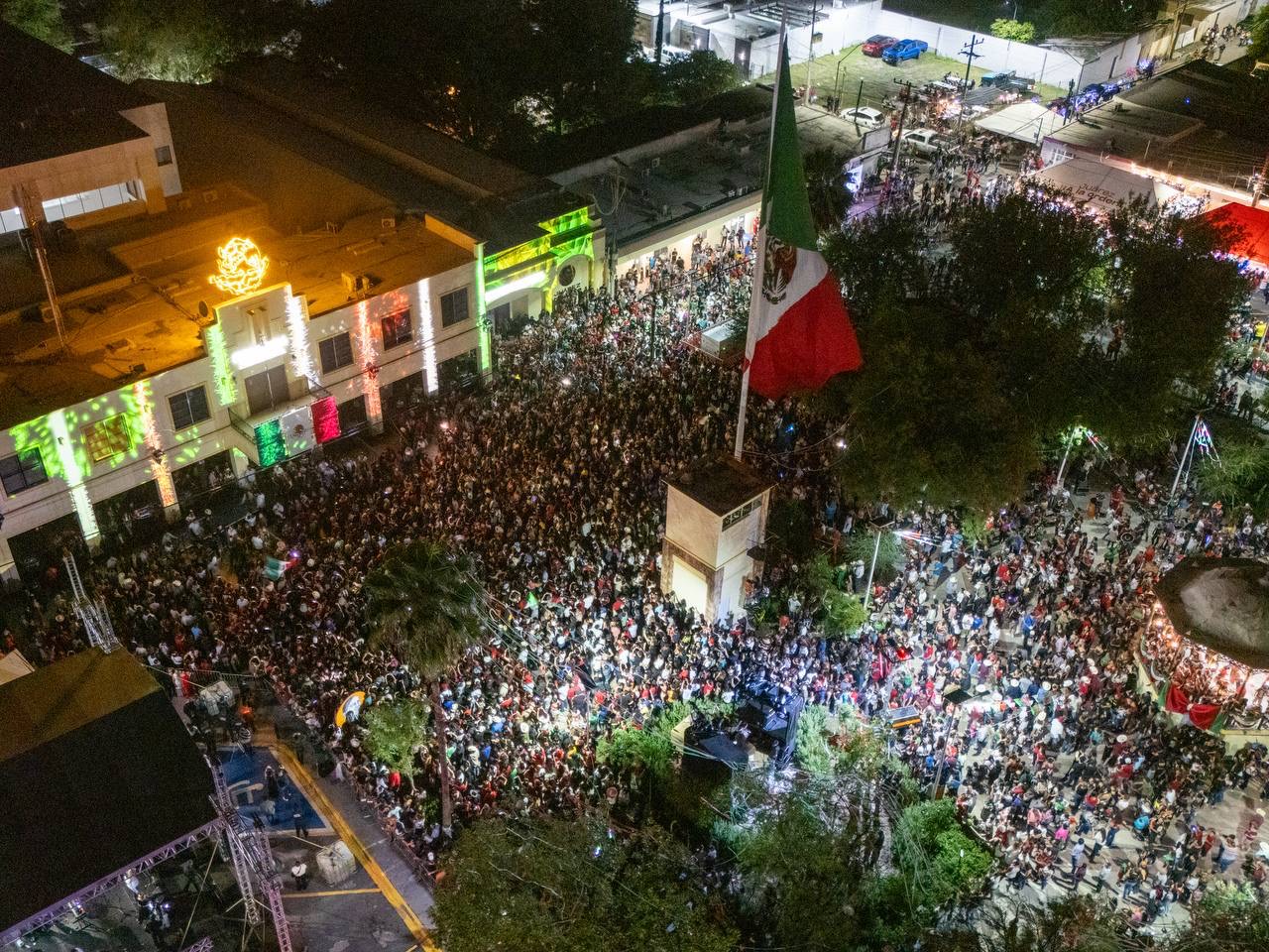 Los asistentes disfrutaron de un espectáculo musical encabezado por Leandro Ríos, Grupo MAR-K2 y Dezigual. Además, pudo verse un espectáculo de video mapping en la fachada de la Presidencia Municipal.