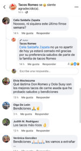 “Con un nudo en la garganta, pero con el corazón lleno de gratitud, Tacos Romeo  Cierra sus puertas nos despedimos de todos nuestros clientes.