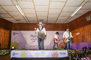 Entre flores, globos, música, porras y mucha algarabía, el Presidente Municipal de Santiago, David de la Peña Marroquín, y su esposa, la Presidenta del DIF, Olga Amalia Villalón Toba, coronaron a Magda Guadalupe Guerra García, de la comunidad de El Barrial, como nueva Reina del Adulto Mayor, ante cientos de personas mayores que también disfrutaron su tradicional baile, en el Club de Leones del municipio.