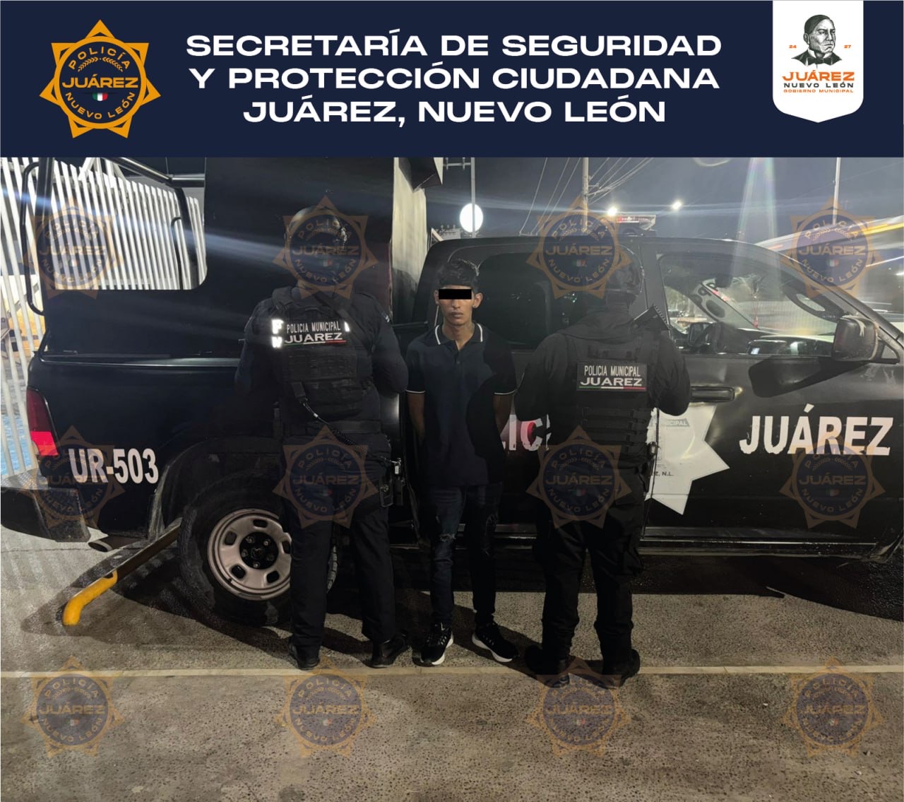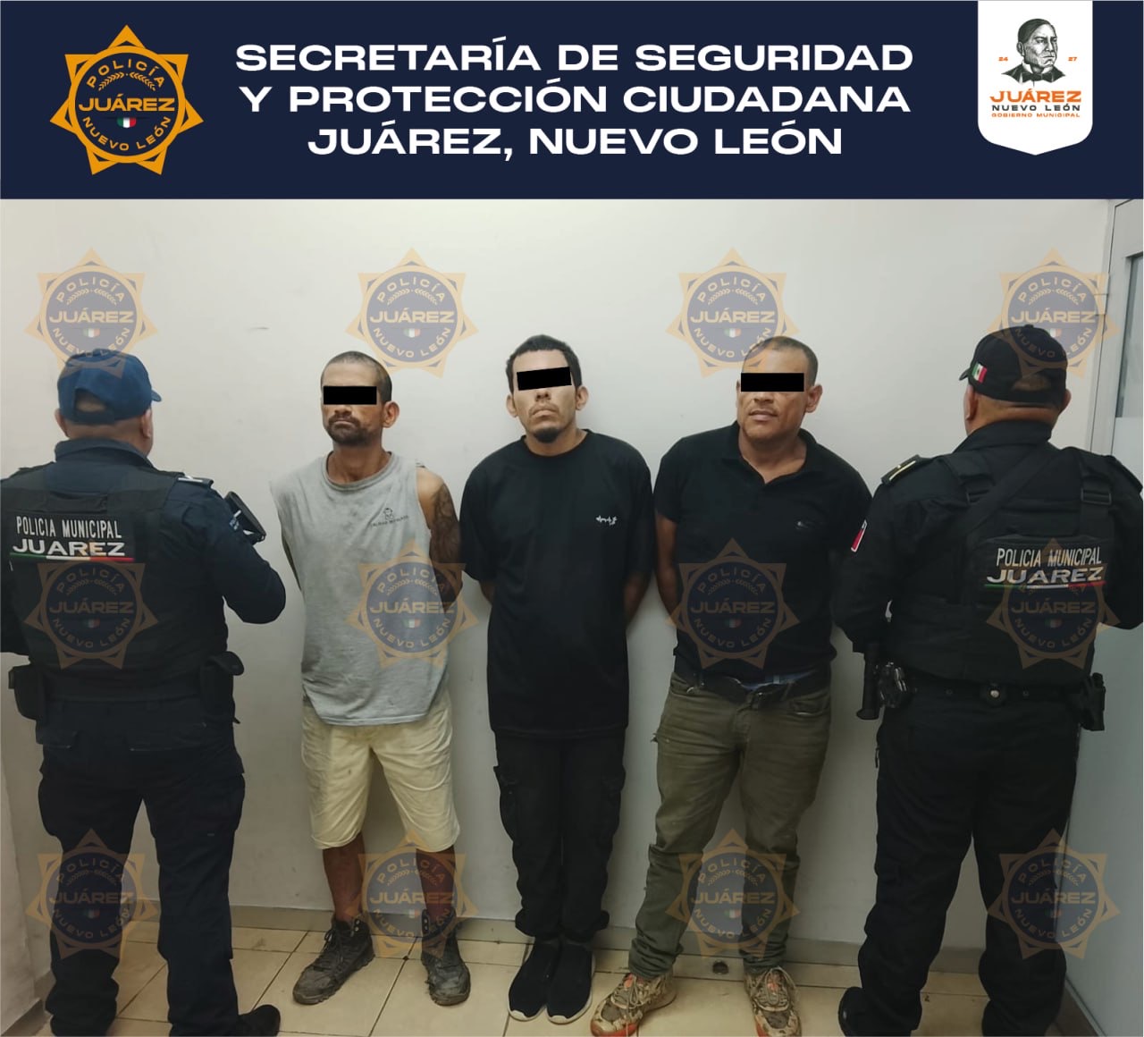 📍 Juárez, N.L. – Como parte de las acciones de prevención y vigilancia del operativo Calles en Orden, elementos de la Secretaría de Seguridad y Protección Ciudadana de Juárez realizaron el aseguramiento de cuatro personas en distintos hechos registrados en la colonia Los Rehiletes.