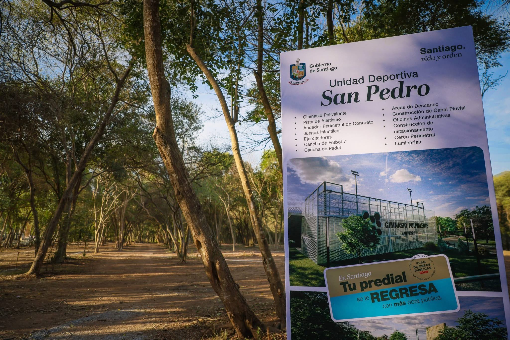 La Unidad Deportiva San Pedro incluirá gimnasio polivalente, pista de atletismo, cancha de futbol 7, cancha de pádel, andador perimetral de concreto, juegos infantiles, ejercitadores, áreas de descanso, oficinas administrativas, estacionamiento, cerco perimetral y luminarias, consolidándose como uno de los complejos deportivos más completos de Santiago.