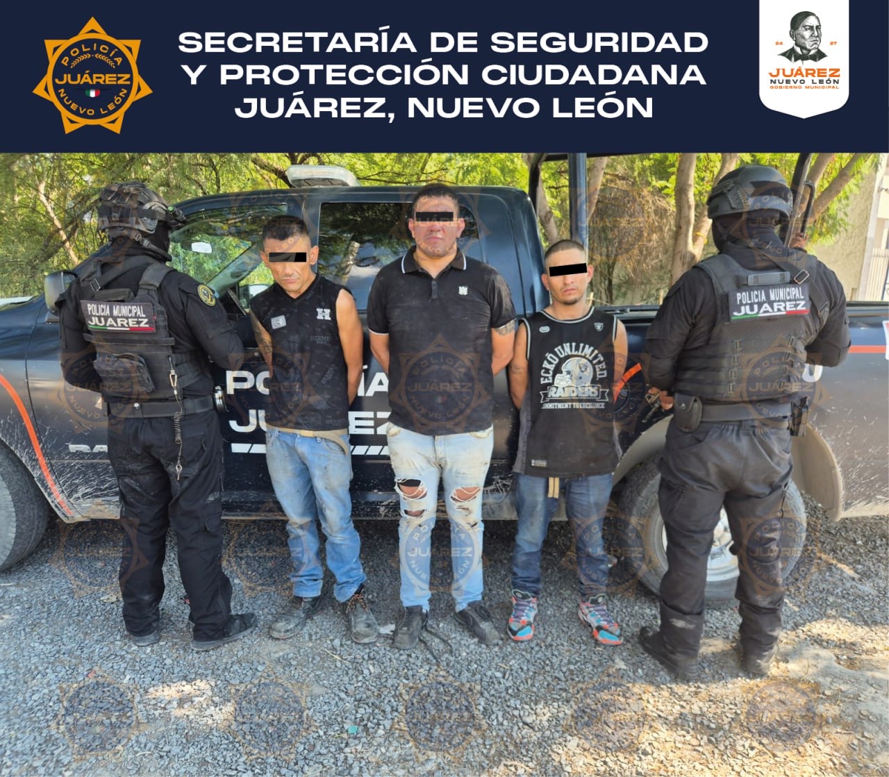 JUÁREZ, N.L.- Durante recorridos de prevención y vigilancia del operativo Calles en Orden, elementos de la Secretaría de Seguridad y Protección Ciudadana de Juárez detuvieron a tres hombres en posesión de droga, dinero en efectivo y diversos objetos, en la colonia Real de San José.