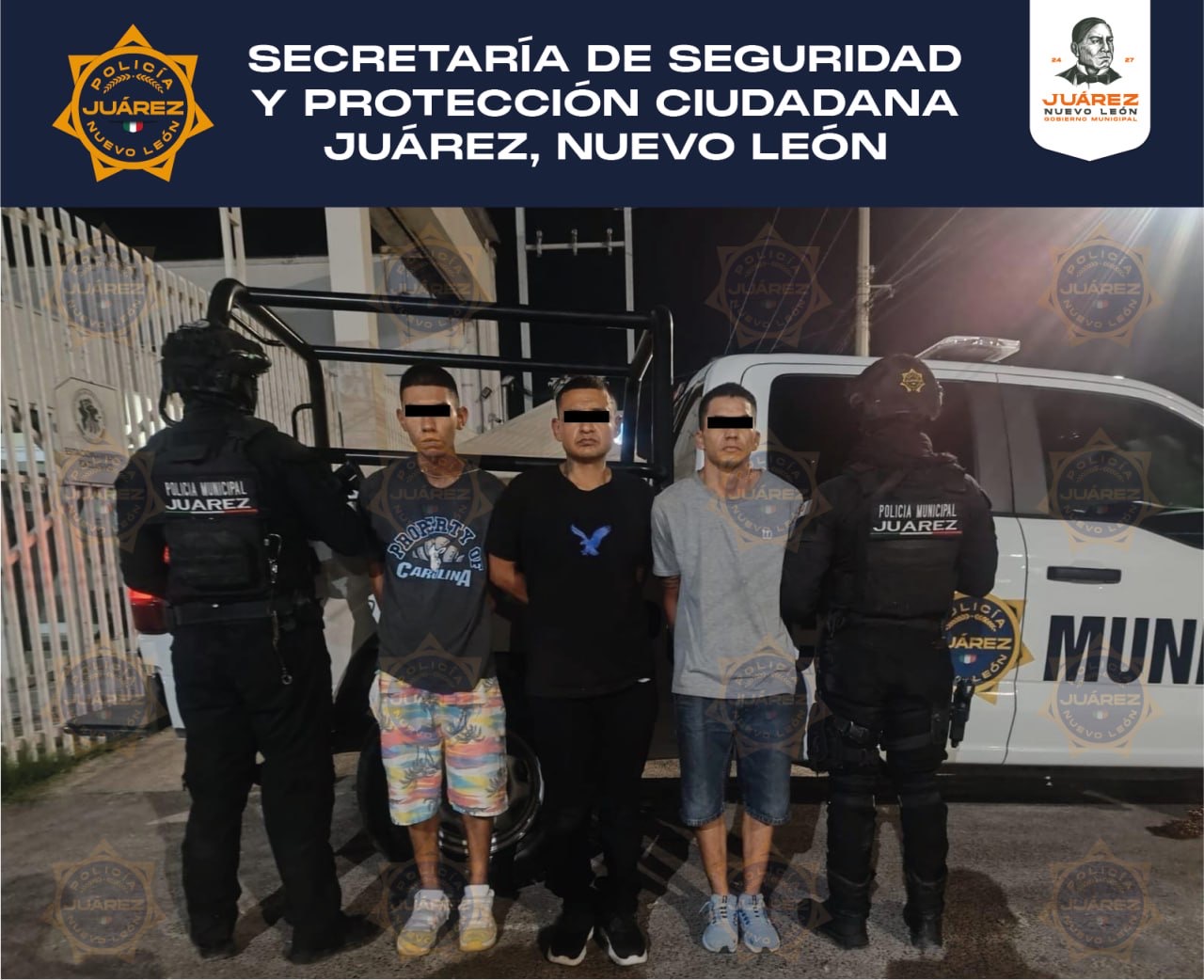 JUÁREZ, N.L.- Durante un recorrido de prevención y vigilancia implementado como parte del operativo Calles en Orden, elementos de la Secretaría de Seguridad y Protección Ciudadana de Juárez detuvieron a tres hombres y un menor de edad, a quienes se les aseguraron diversas dosis de droga en la colonia Villas de San Juan.
