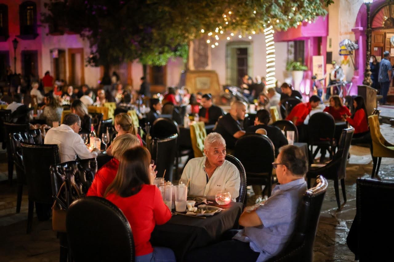 Desde temprano, los restaurantes locales comenzaron a vestir la plaza principal como si prepararan el escenario para una historia de amor eterna: mesas elegantes bajo el cielo estrellado, flores frescas, velas titilando con el viento suave de la sierra y ese murmullo delicioso de quienes saben que están a punto de vivir algo especial.