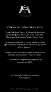 La familia de la joven Jacqueline Yamilet Briones Torres pide a la ciudadanía respeto ante el fallecimiento de la joven tras una cirugía estética en una clínica de Monterrey.