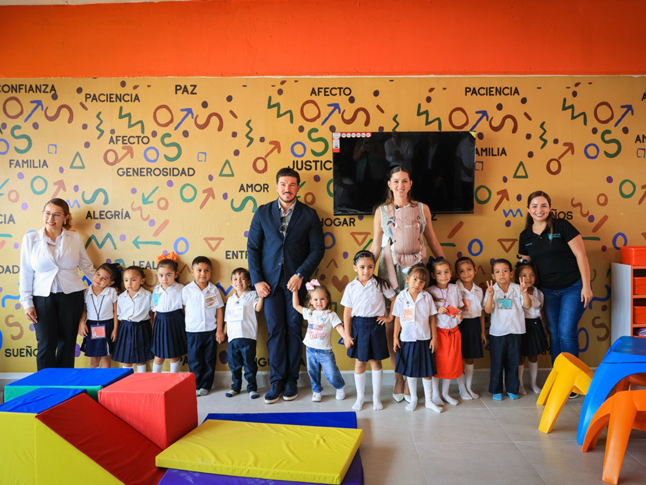 “Por eso cuando una niña o un niño cruza por primera vez la puerta de su kínder, le damos mucho más que la posibilidad de entrar a un salón. Le estamos dando la oportunidad de descubrir el mundo. Hoy aquí en Villas de Palmanova estamos sembrando oportunidad para 250 niñas y niños que merecen empezar su camino en un espacio seguro, bonito y digno”, agregó.