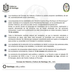 “Si conoces a alguien que ha hecho alguna diferencia significativa en nuestra comunidad, en Santiago queremos rendirle homenaje con la Medalla al Mérito ‘Capitán Diego Rodríguez de Montemayor’”, publicó el Alcalde en sus redes sociales. “Reconozcamos juntos el esfuerzo de quienes contribuyen al bienestar de nuestra comunidad”.