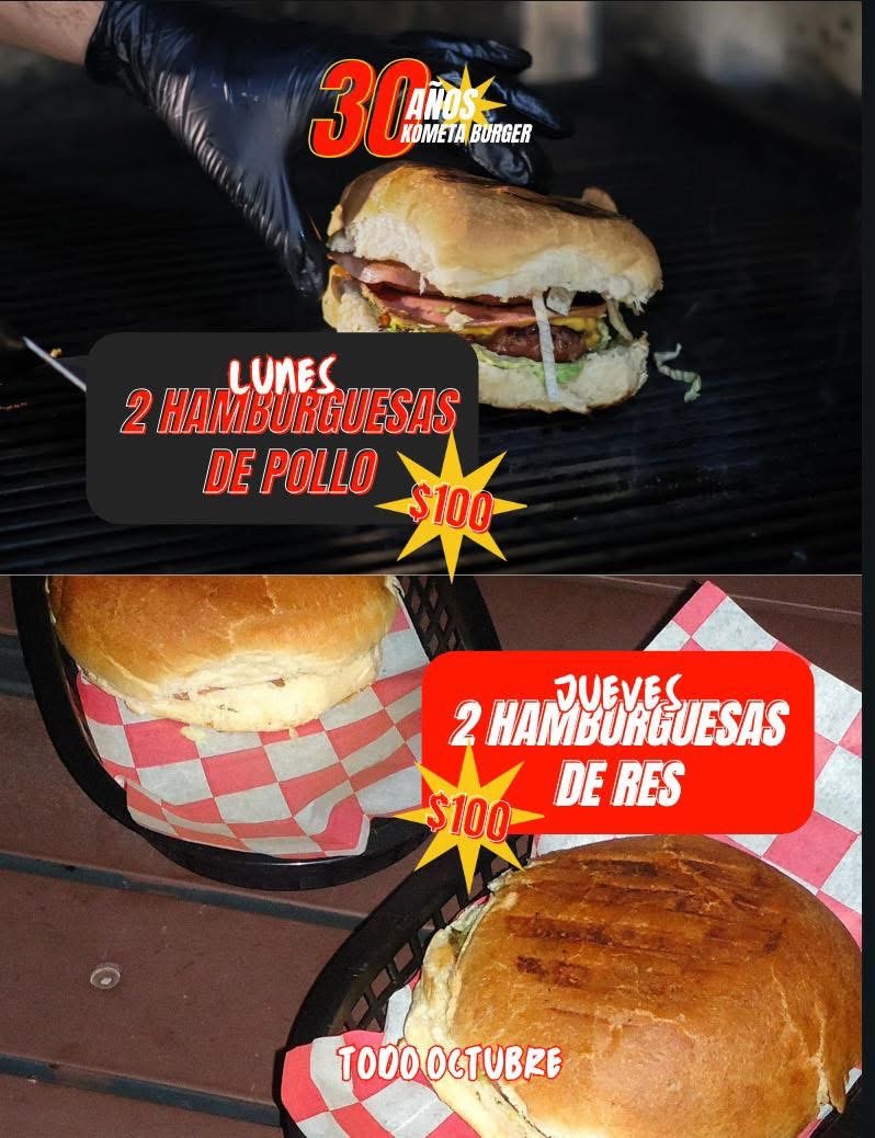 Kometa Burger abre de miércoles a lunes, de 12:00 p.m. a 11:30 p.m., y cuenta también con servicio a domicilio a través de los teléfonos 828 284 1717 y 828 284 0205.