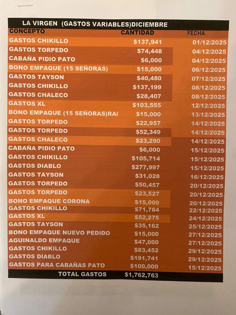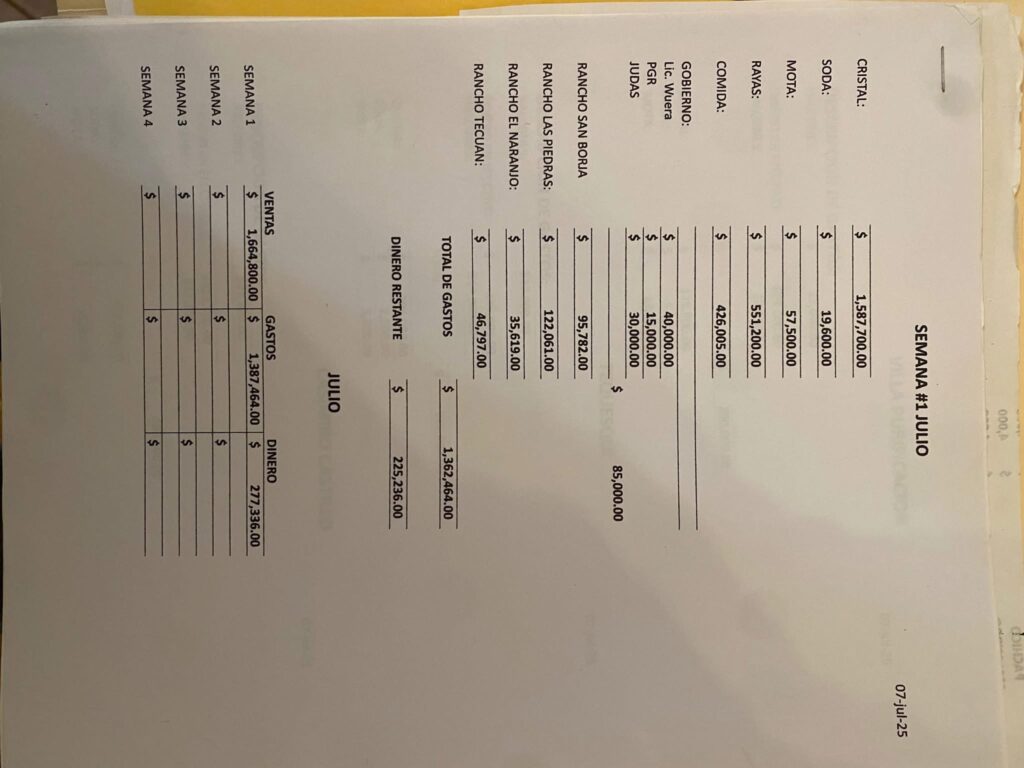 Además, la nómina contemplaba gasolina, renta de una “base”, oficina para el grupo armado, despensas y reparaciones mecánicas. Todo contabilizado.