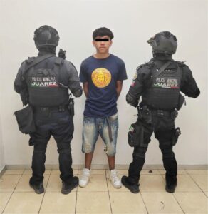 JUÁREZ, N.L. – Como parte del Operativo Calles en Orden, implementado para reforzar la seguridad en sectores clave del municipio, elementos de la Policía de Juárez detuvieron a un adolescente que alteraba el orden público en calles de la colonia Valle Condesa.