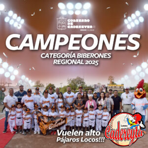 El Gobierno Municipal, encabezado por Carlos Rodríguez “El Cuate”, extiende una cálida y orgullosa felicitación a los Pájaros Locos, a sus entrenadores y a las familias que los acompañan, por conquistar el Campeonato del Torneo Regional de Béisbol, categoría Biberones.