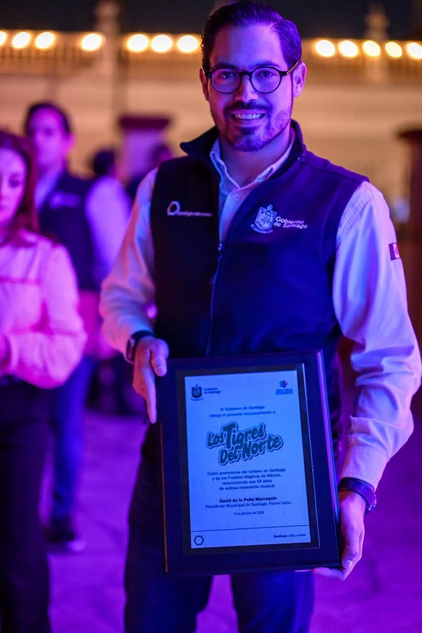 Santiago, Nuevo León brillará ante el mundo. En un anuncio lleno de orgullo, música y visión internacional, el Presidente Municipal David de la Peña Marroquín reconoció a Los Tigres del Norte como Embajadores de Promoción Turística de Santiago y de los Pueblos Mágicos de México, durante la presentación oficial del esperado Festival Vive México.