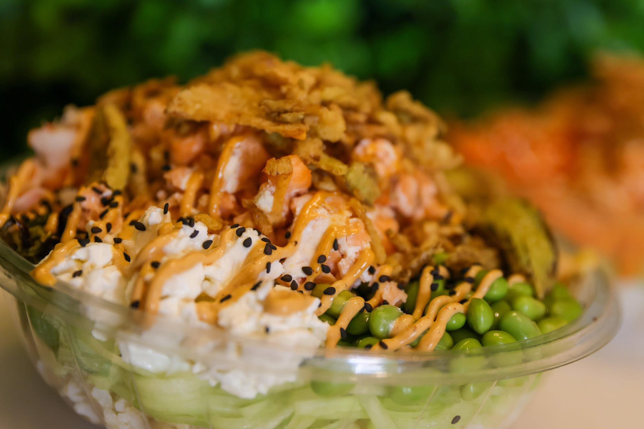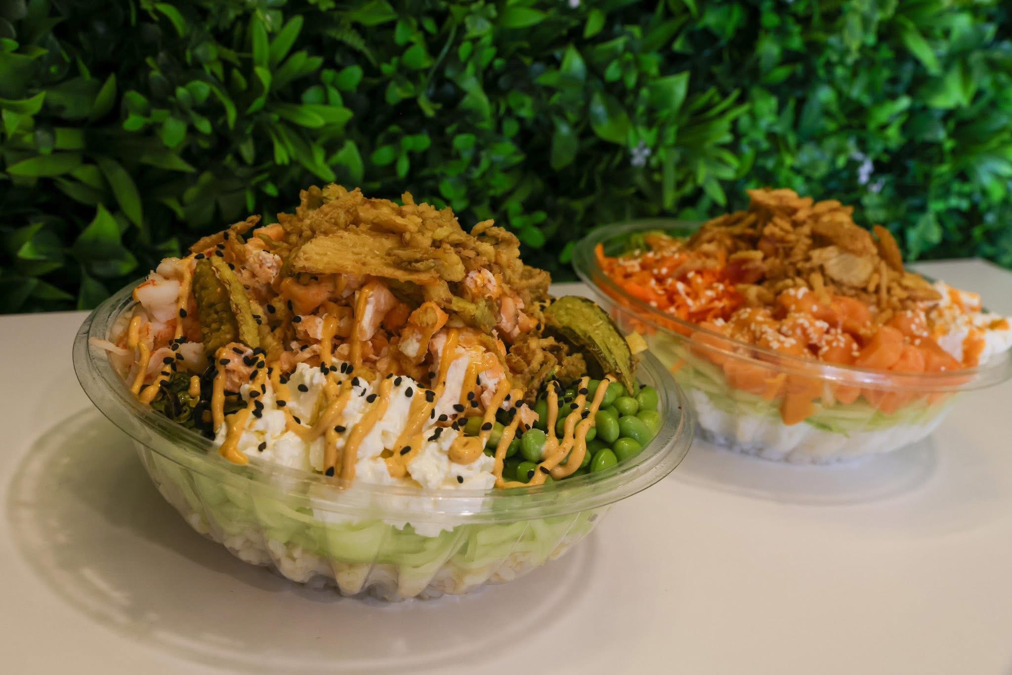 Y luego viene lo bueno: atún, mango, zanahoria, surimi, quinoa, queso crema, cebollita frita y su respectivo aderezo con ajonjolí… o sea, un desfile de sabor que hace que hasta el más carnívoro diga: “bueno… uno no hace daño”.