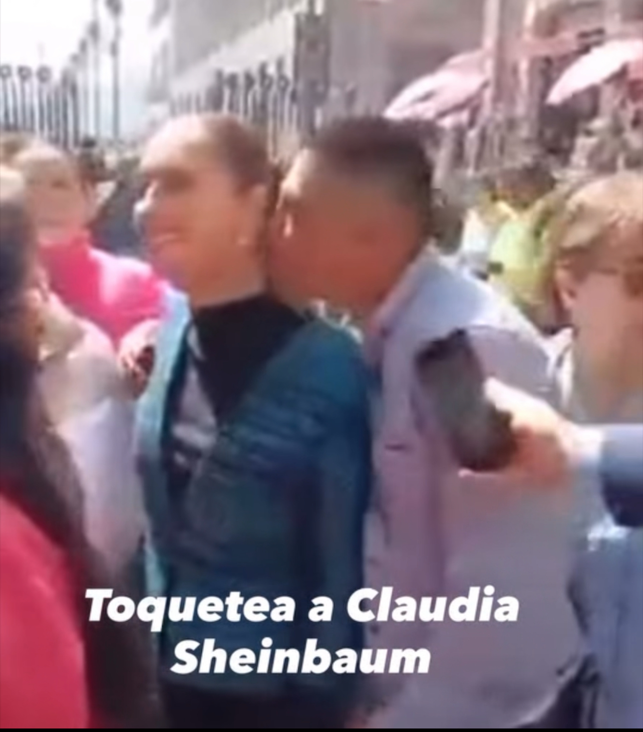 El sujeto, aparentemente ebrio y quien intentó besar por la espalda a la mandataria, fue detenido por el equipo de seguridad de la presidenta mexicana que, según videos, se mostró tensa tras el episodio.