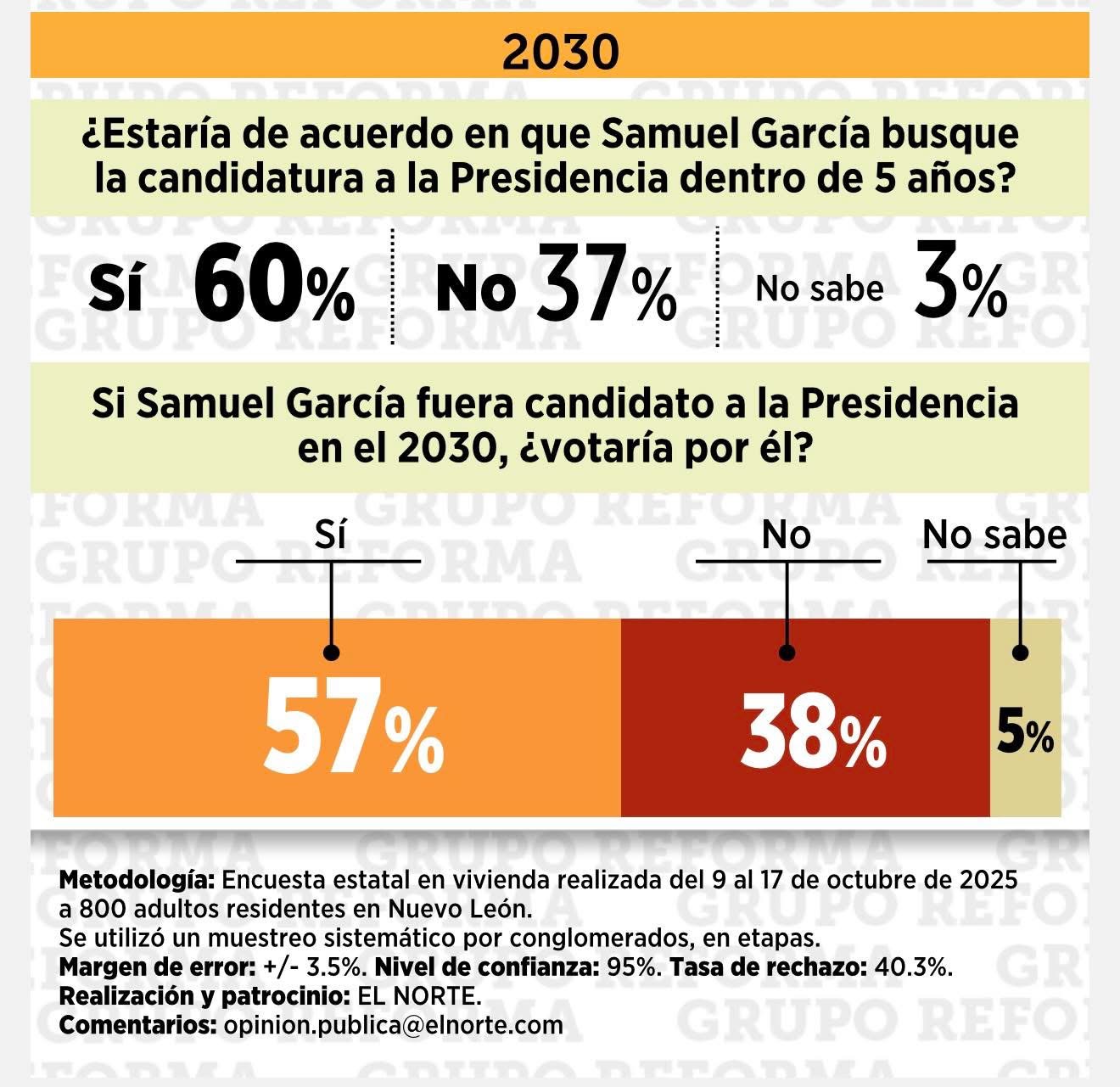Analistas políticos destacan que el aumento en la aprobación podría estar relacionado con los proyectos de obra pública, las inversiones en transporte y la promoción de políticas enfocadas en innovación y tecnología que caracterizan al gobierno de Samuel García.